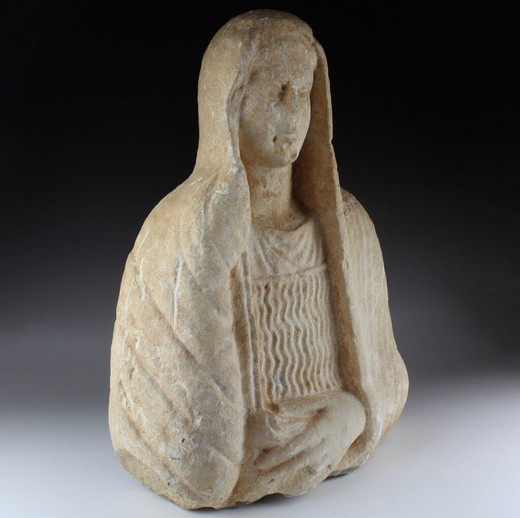 Byzantine portrait bust of a woman with a scroll for sale Byzantine